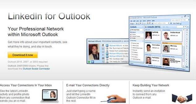 With the release of Microsoft Outlook Social Connector, you can click on a contact’s name to see email and attachments he or she has sent you, meetings you have attended together, and their activities in social networks. You can also send contacts a request to become your connection on LinkedIn, Facebook, and other social networks.