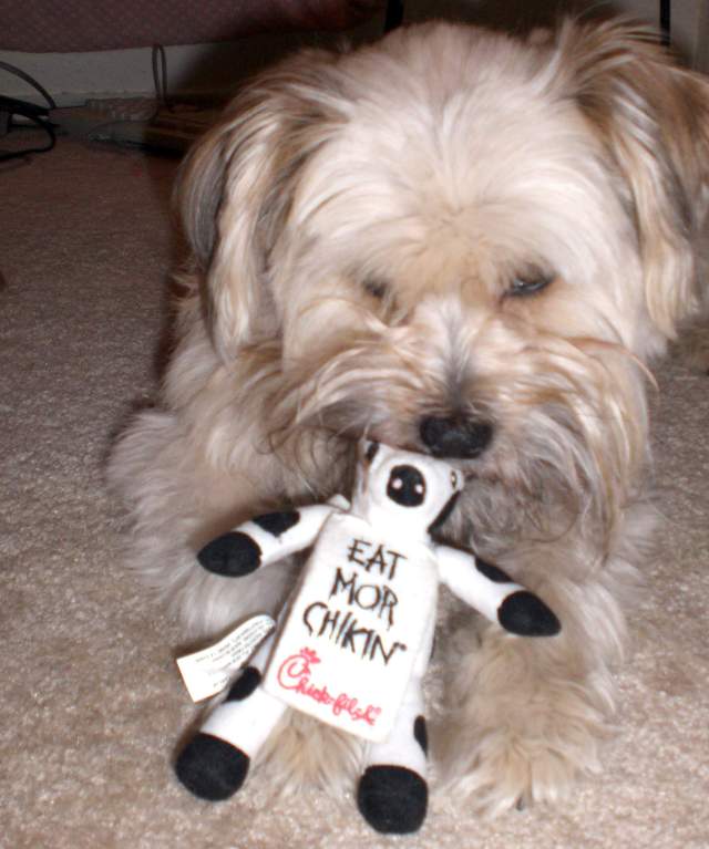 Tibetan Terriers love to run, play, chew, wrestle, play, dance, walk, meet new people, and did I mention play?  Tibetan Terriers will play with anything — but in our house, squeaky toys are the most coveted objects.