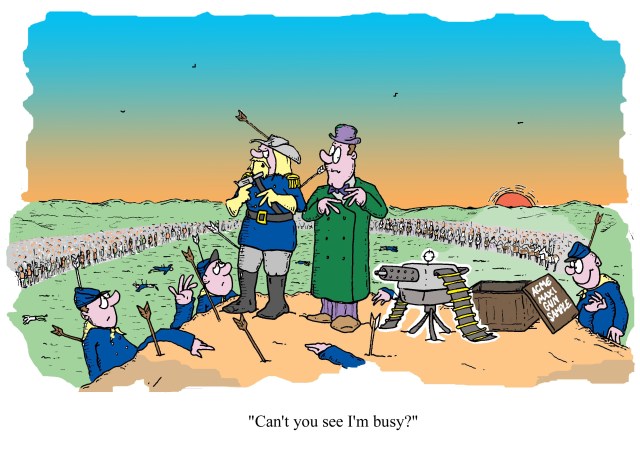 One thing’s for sure: interrupting them in the middle of a battle isn’t the best way to get their attention, even if you are bringing a Gatling gun to a bow and arrow fight.