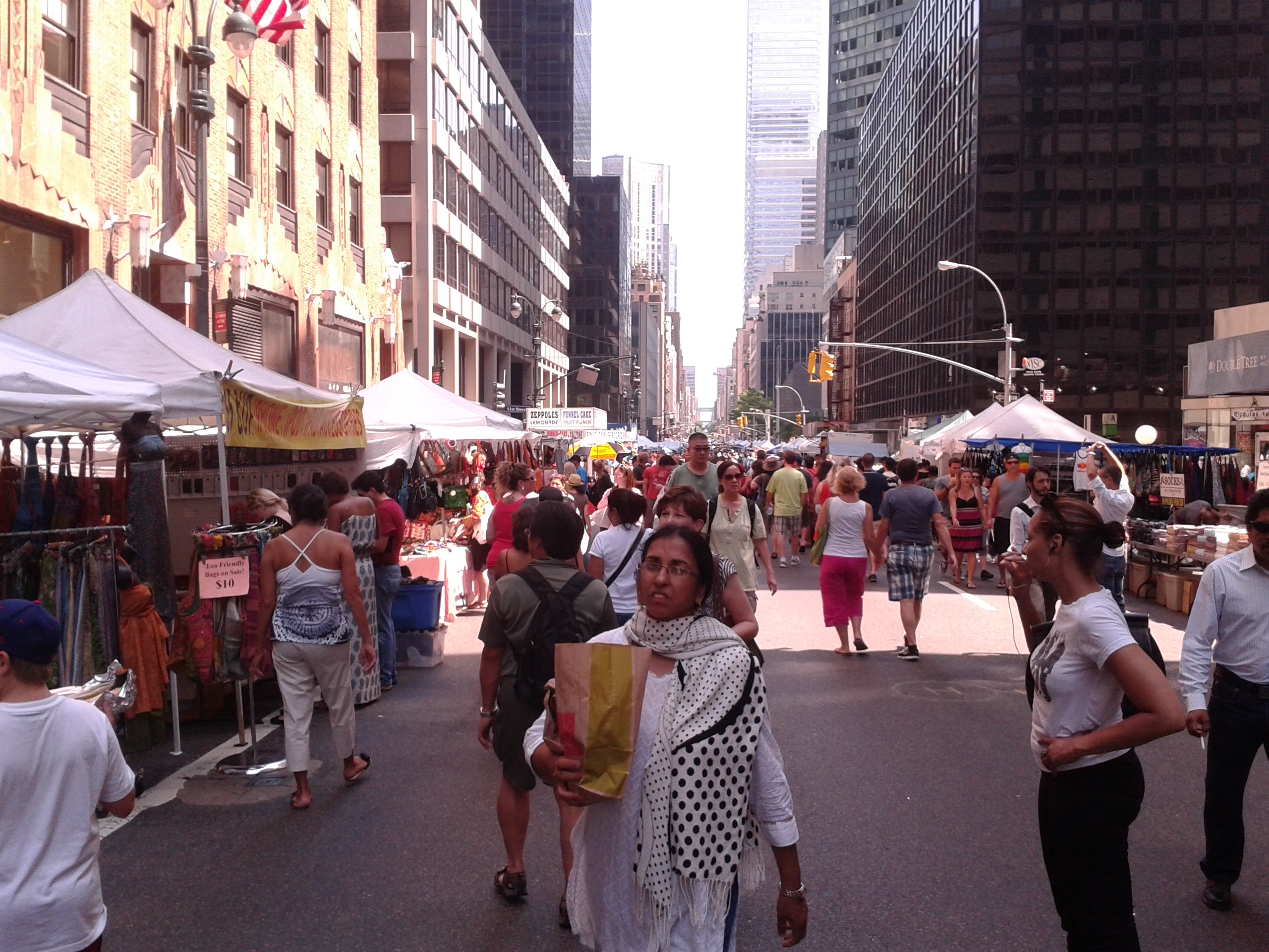 Food at one of the weekend “pop-up” street festivals that seem to happen in New York City nearly every weekend. We stepped outside our hotel, and there it was: blocks of little white tents on 50th, stretching off in both directions. Amazing smells wafted from vendors, and the $5 chicken kabob I got from a street vendor were the best food I had in a week in the city. The shops had a range of goods, and we spent a happy hour or so wandering through them before we had to get off to another scheduled activity.