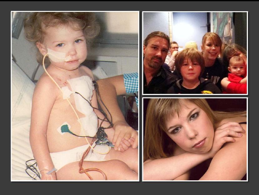 From left, this is my granddaughter after her Fontan — the last of the major heart surgeries, three years after a doctor said she wouldn’t survive. Top right, family photo with her new baby, her dad, and her little brother. (I’m attempting to hide behind my great grandson.) November 2013. Lower right, sweet 16 portrait.