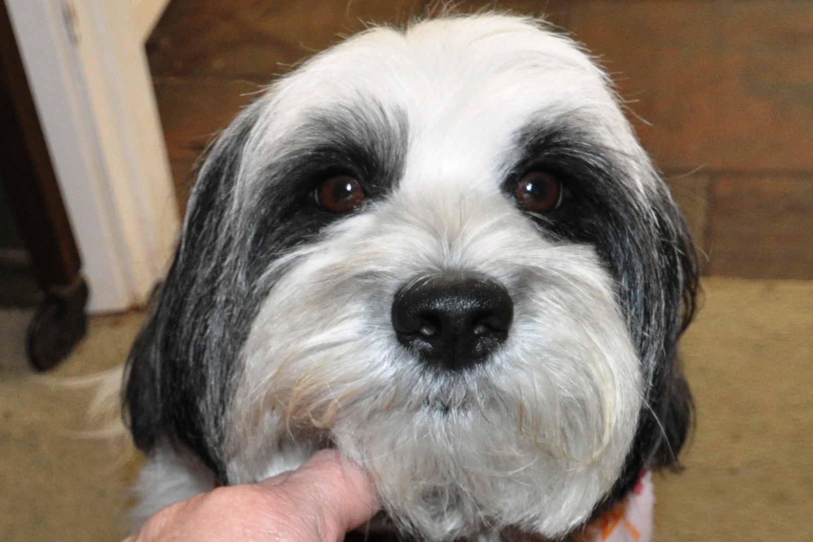 She has become an escape artist who digs under our fence. Her name is Suchi, and she has a collar, and tags that include her name and my phone number. She’s a 2-year-old female, black and white Tibetan Terrier, and she weighs about 18-20 pounds. Her distinguishing features are a black mask around her eyes, black years, and a mostly white body with a few black spots on her spine. She’s currently at home — after a nice neighbor returned her earlier today. But she will get out again. She always seems to.