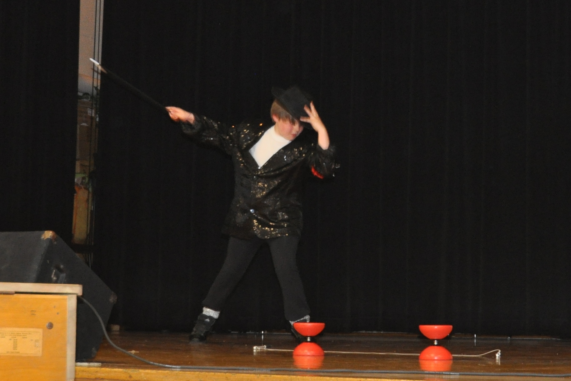 Kameron Badgers at Wallace Elementary Talen Show 2013I almost didn’t sign up (for the school talent show) this year. After last year’s show, some kids started bullying me about the costume I wore onstage. The photo to the right was taken during last year’s talent show — a black sequined jacket over a white T-shirt and black pants. Personally, I don’t see what was wrong with my costume, and I don’t think anyone should be bullied for what they wear or how they look.