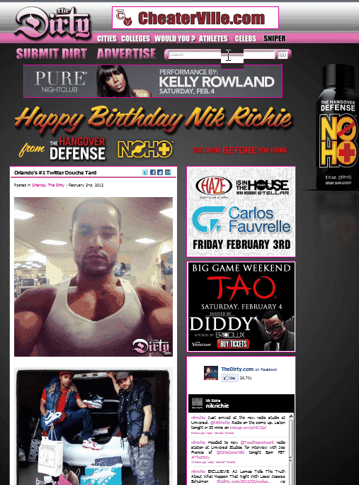 Screen shot of Nik Richie’s blog taken 2/1/12; copyright belongs to the site owner.